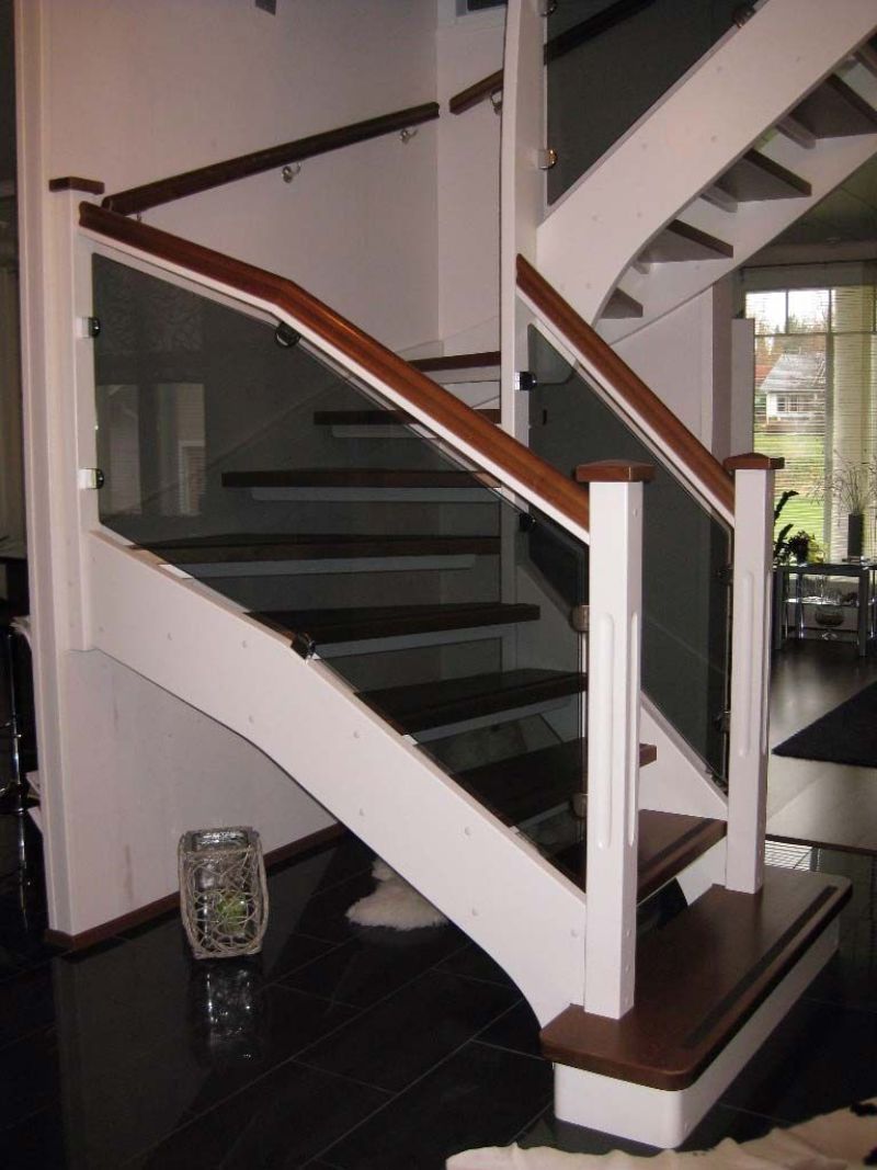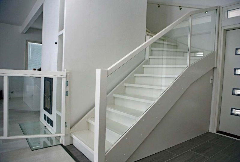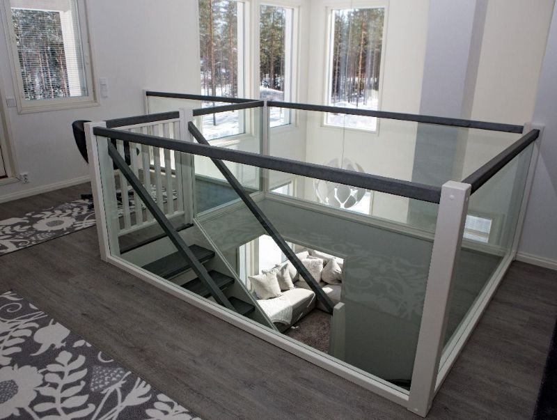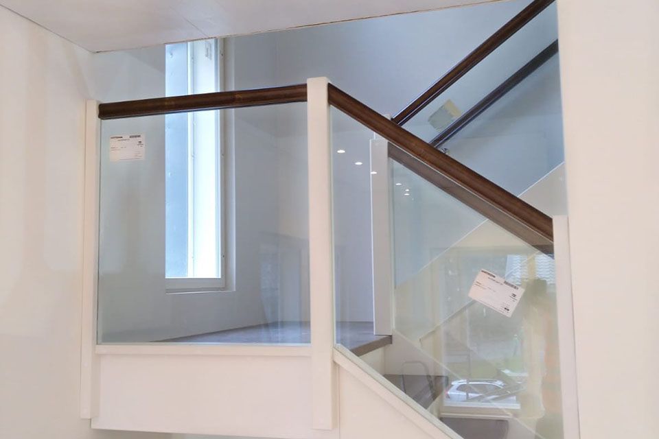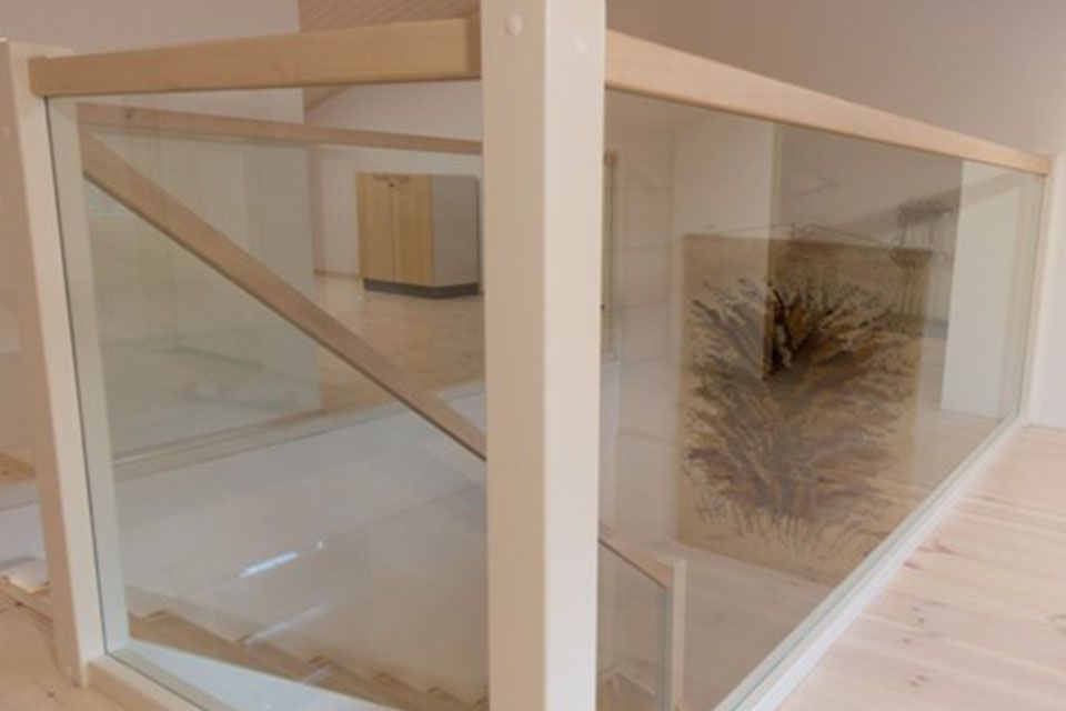 Video esittelee yhden lasikaideratkaisun. Alempana kuvia asiakkaiden lasi- ja puukaidevalinnoista.